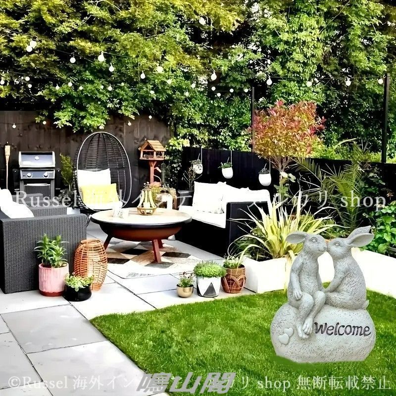 ガーデンオブジェ うさぎ 石風 樹脂 ウェルカムサイン 玄関 入口 エントランス ガーデンオーナメント 置物 ラビット アニマル ガーデニング 雑貨 ガーデン雑貨 ガーデンインテリア ガーデン インテリア 庭の装飾 お洒落 おしゃれ 4-7