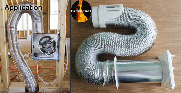 100 125 150mm aluminum connecting flexible ducting pipe is made of aluminum foil outside, a polyester film in middle. It is light in weight and suitable to be used in low and medium pressure heating and hvac systems.