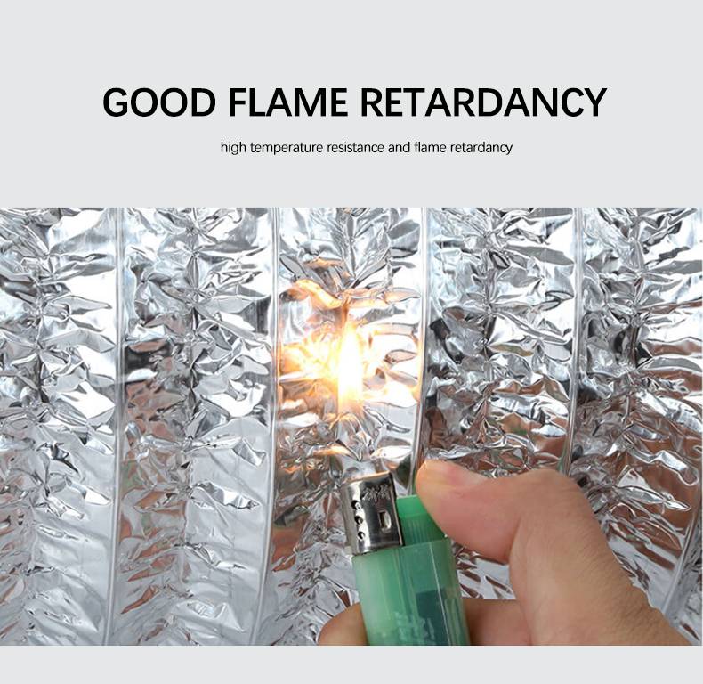 Construction: * Single layer aluminum flexible duct (AFD-S) 1 layer of the aluminium laminated with the polyester with the coil made of the spring wire.. Total 2 layers: 1st layer: Aluminum foil (