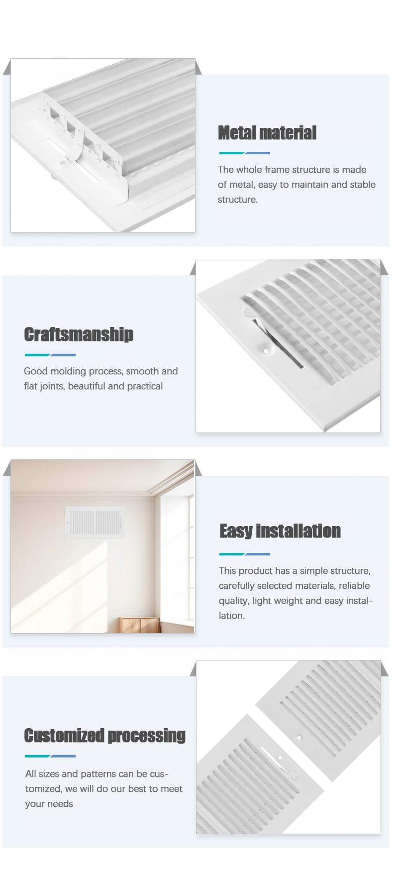A: We are focus on producing hvac ventilation air grilles, ceiling air diffusers, air vent covers, air dampers